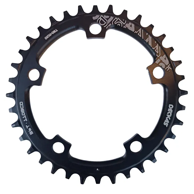 Monoplato Narrow Wide Deckas 36T 110BCD36 dientes5 agujerosaluminio 7075Peso 54grCompatible con cadenas de 7v a 12vNo sirve para biplato/triplato, sólo uso como monoplato