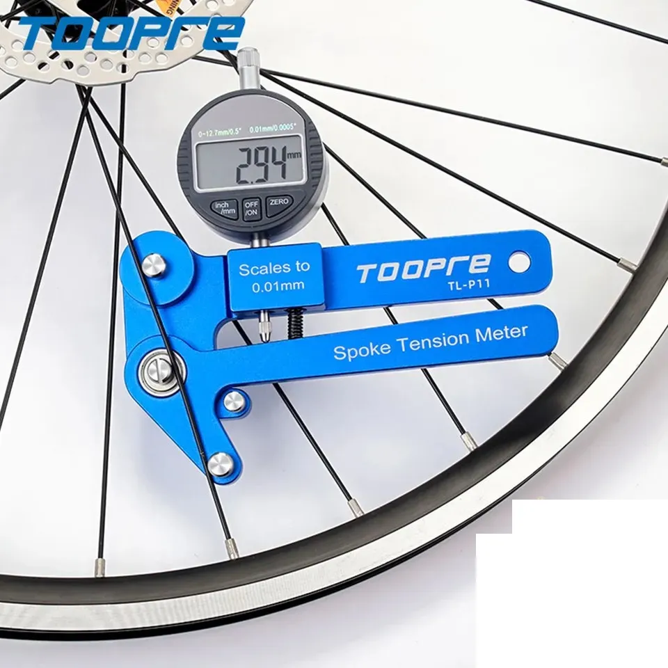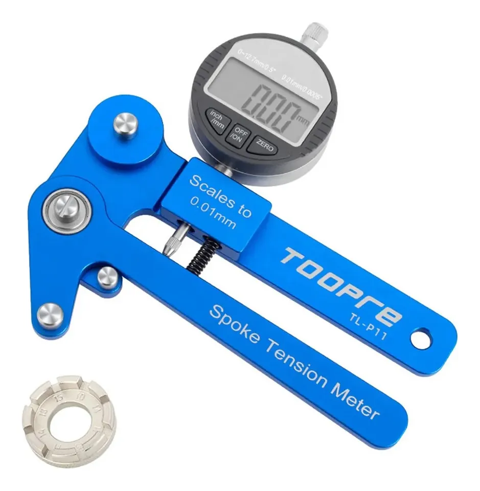 Medidor de tensión, Tensiómetro digital para rayos de bicicleta Marca: TOOPRE Modelo: TL-P11 Material: Aluminio Incluye herramienta para tensar rayos Tabla de tensiones por diámetro de rayos Instrucciones de uso