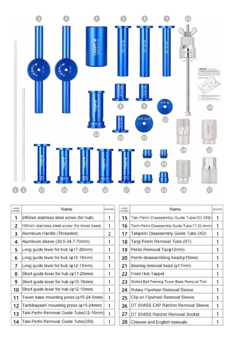Permite extraer y colocar rulemanes de mazas de eje pasante, mantenimiento bodys Shimano y DT-SWISS (240S 240 340 350 440 540 240 180)