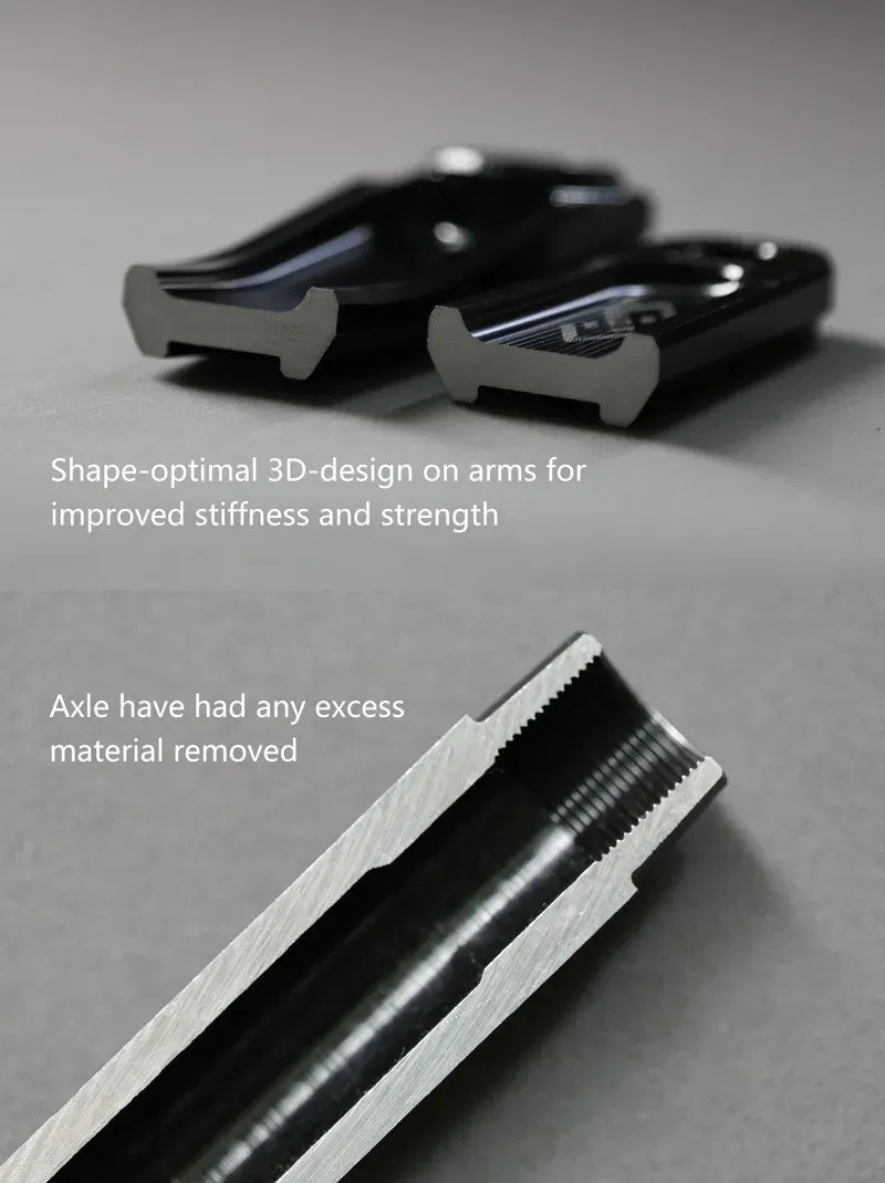 Material: Palanca aluminio 6061 T6, Eje aluminio 7075 T6
