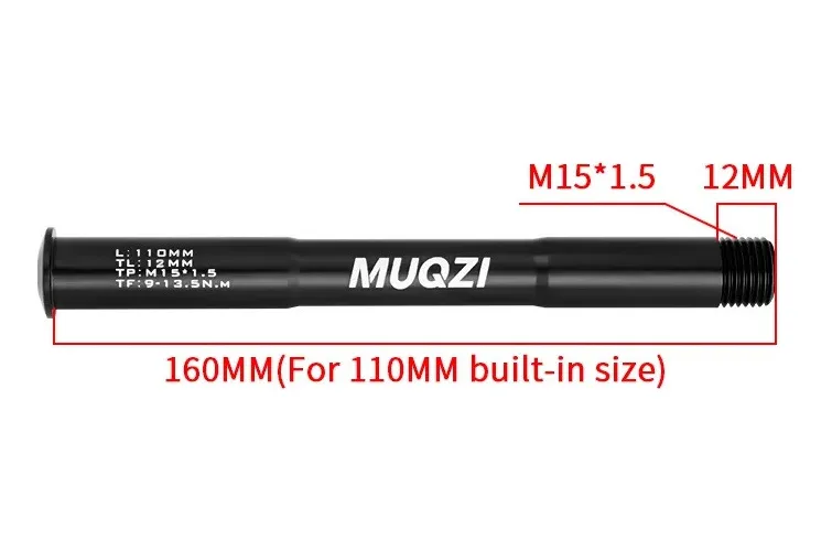Eje pasante para maza delantera compatible con horquillas Rock ShoxLargo total 160mmPara horquillas y mazas 15x110mmLargo rosca 12mmRosca M15x1.5mmAluminio mecanizado CNCPar apriete 9-13NmPeso 38gr