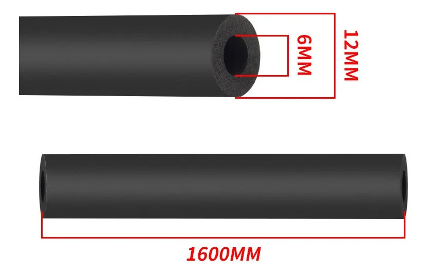 Largo 1.6mDiámetro externo 12mmDiámetro interno 6mmMaterial espuma