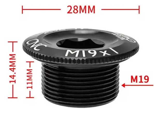 Material: Aluminio 7075 AnodizadoDiámetro: 28mmLargo: 14,2mmLargo rosca: 11mmRosca: M19x1