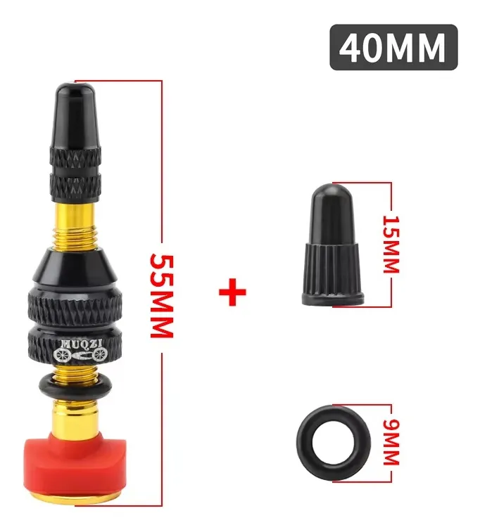 Aluminio40mm largoPeso: 8gr cada vávulaTapa de aluminio y otra de plástico para repuestoOring de repuestoColores negro, rojo ó dorado (elegir de las opciones)