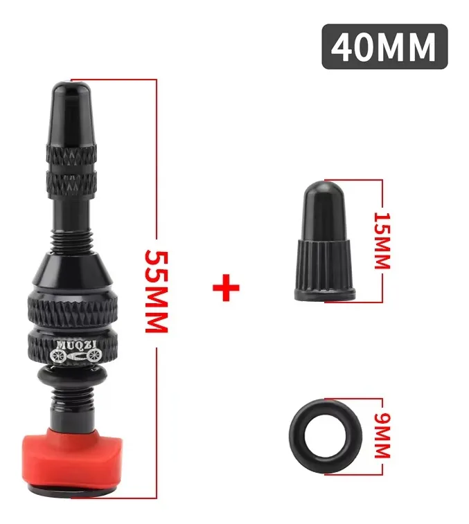 Kit válvulas tubeless presta aluminio 40mm desmontables x2 Negro