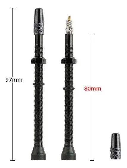 Aluminio80mm largoPeso: 6gr cada vávulaColor negra tapa de aluminioColor roja tapa de plástico
