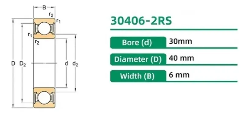 Medida 30x40x6Código 30406 2RS HCRodamiento sellado de acero con bolillas cerámicas Si3N4