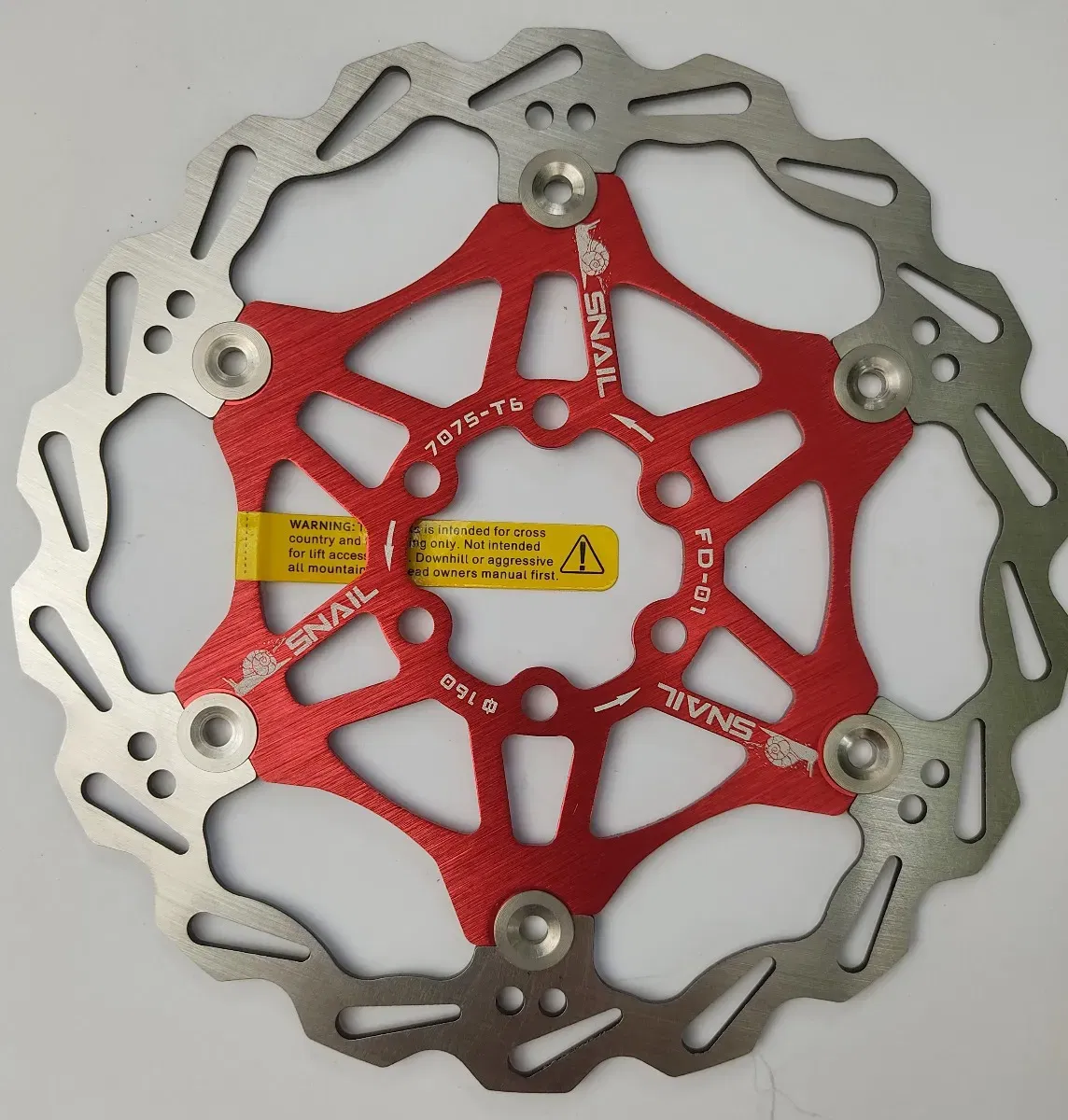 Disco de freno SNAIL 160mm 6T centro aluminio Rojo