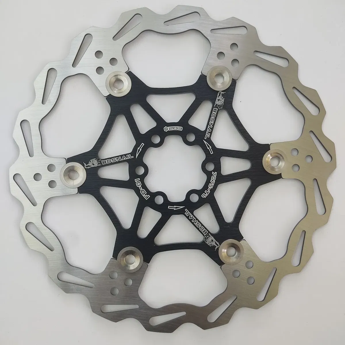 Diámetro: 203mm Centro de aluminio 7075 Pista de freno de acero Rotor de 6 tornillos Incluye 6 tornillos color negro Peso 185gr sin tornillos Precio por unidad
