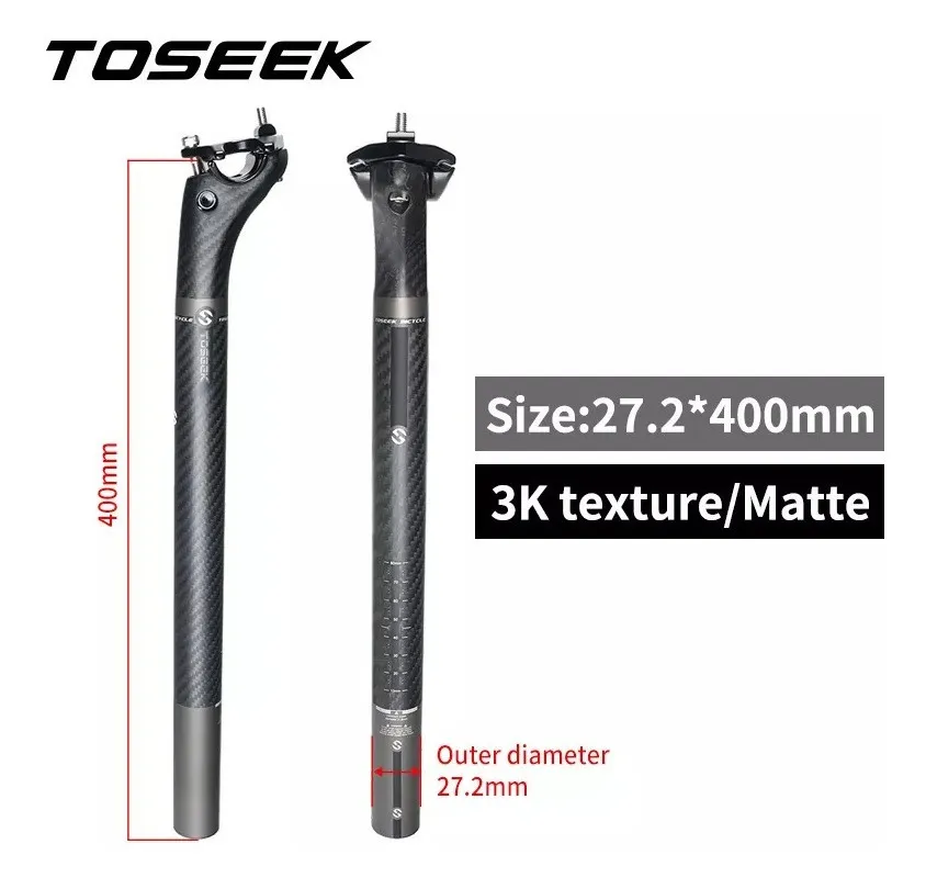Vela de carbono marca TOSEEKdiámetro vela 27,2 mmlargo 400mmoffset 20mmpeso 200grTorque recomendado: grampa sillín 7nm / collar vela 5nm