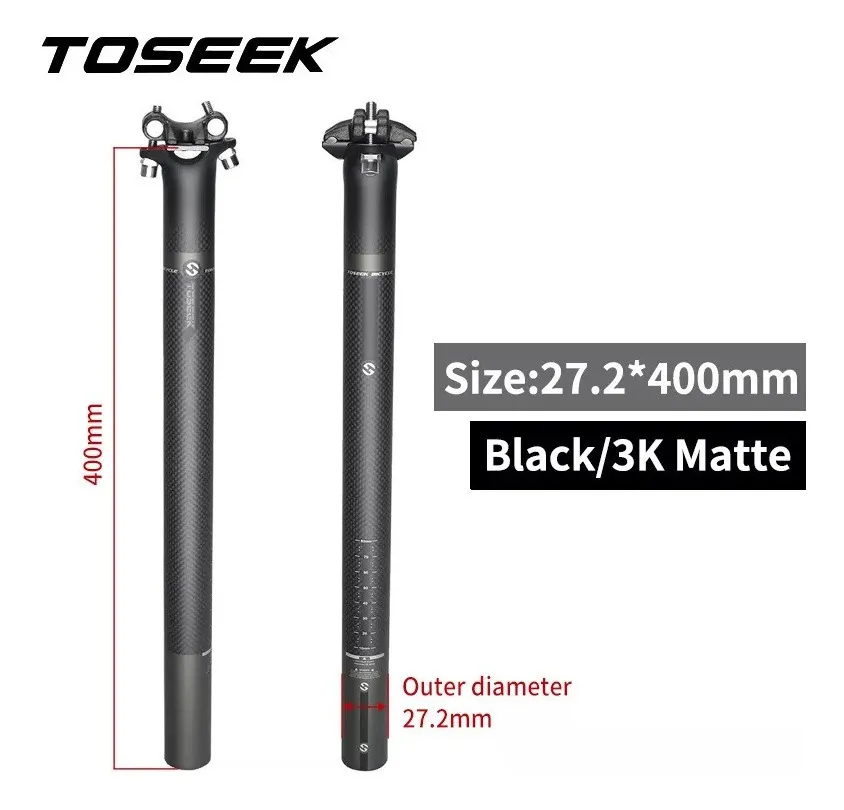 Vela de carbono marca TOSEEKDiámetro vela 27,2 mmLargo 400mmRectapeso 234grTorque recomendado: grampa sillín 7nm / collar vela 5nm
