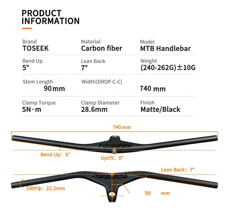 Forma manubrio MTB integrado carbono TOSEEK 740x90