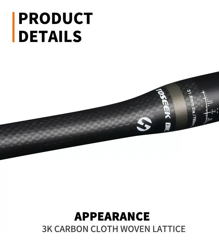 Manubrio Carbono TOSEEKRectoDiámetro stem: 31.8mmDiámetro puños: 22mmRetroceso: 5°Ancho 700mm / 720mm / 740mmTorque tornillos stem: 5Nm