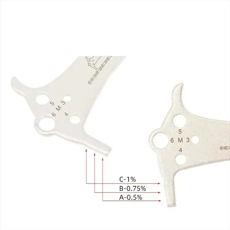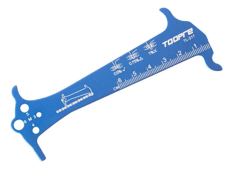 Medidor de desgaste de cadenaMarca TOOPREModelo CR-03Material: Acero (Plateado) / Aluminio (Azul)