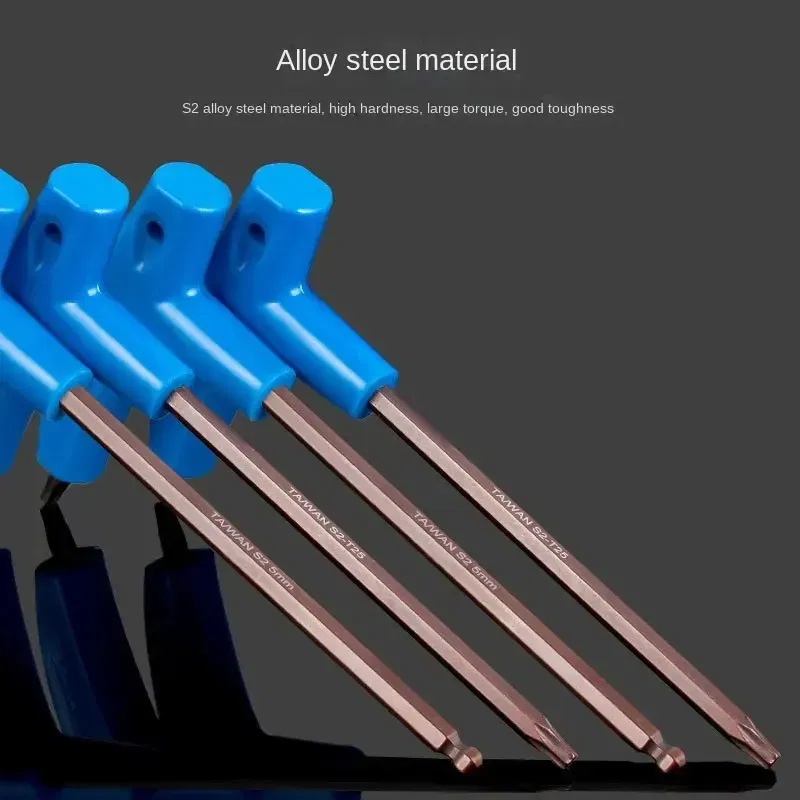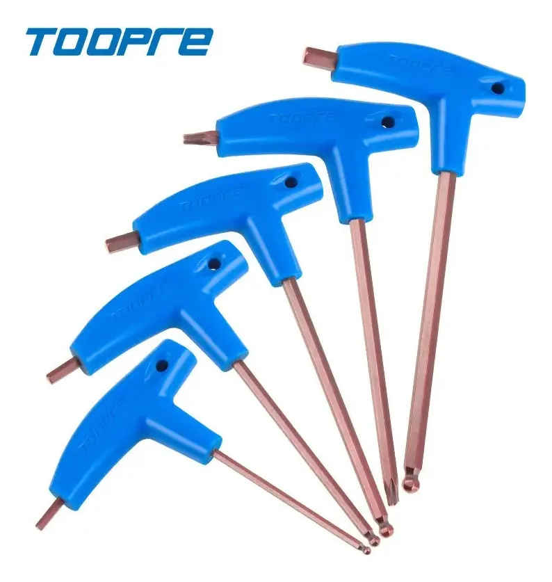 Marca: ToopreMaterial: AceroMango AnatómicoPunta redonda cardánica (para poder ajustar en lugares de difícil acceso)Medidas:Allen 3mmAllen 4mmAllen 5mmAllen 6mmTorx T25